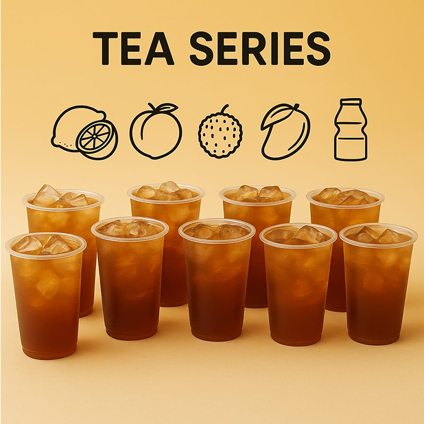 Teh ringan dan menyegarkan dengan rasa seperti Lemon, Peach, Mangga, Serai, Yakult.